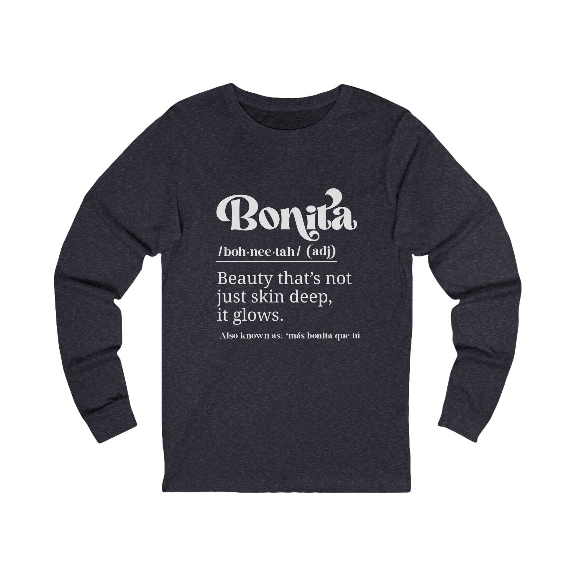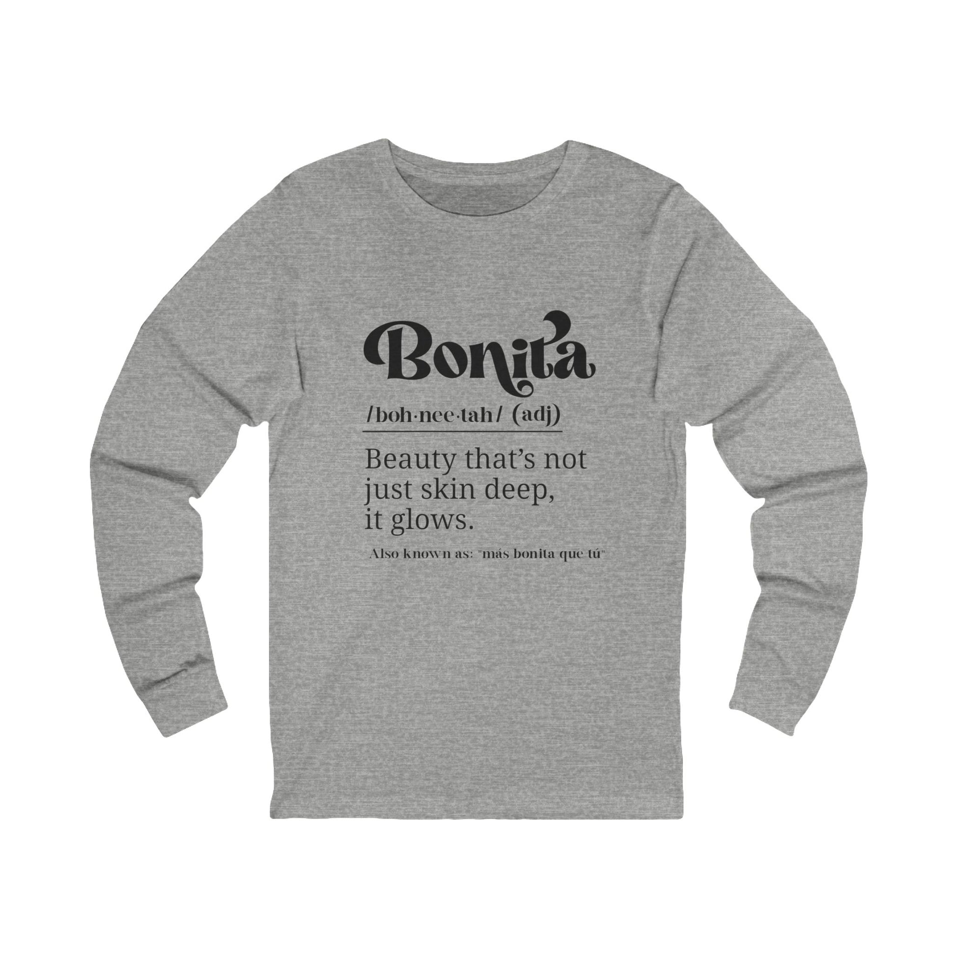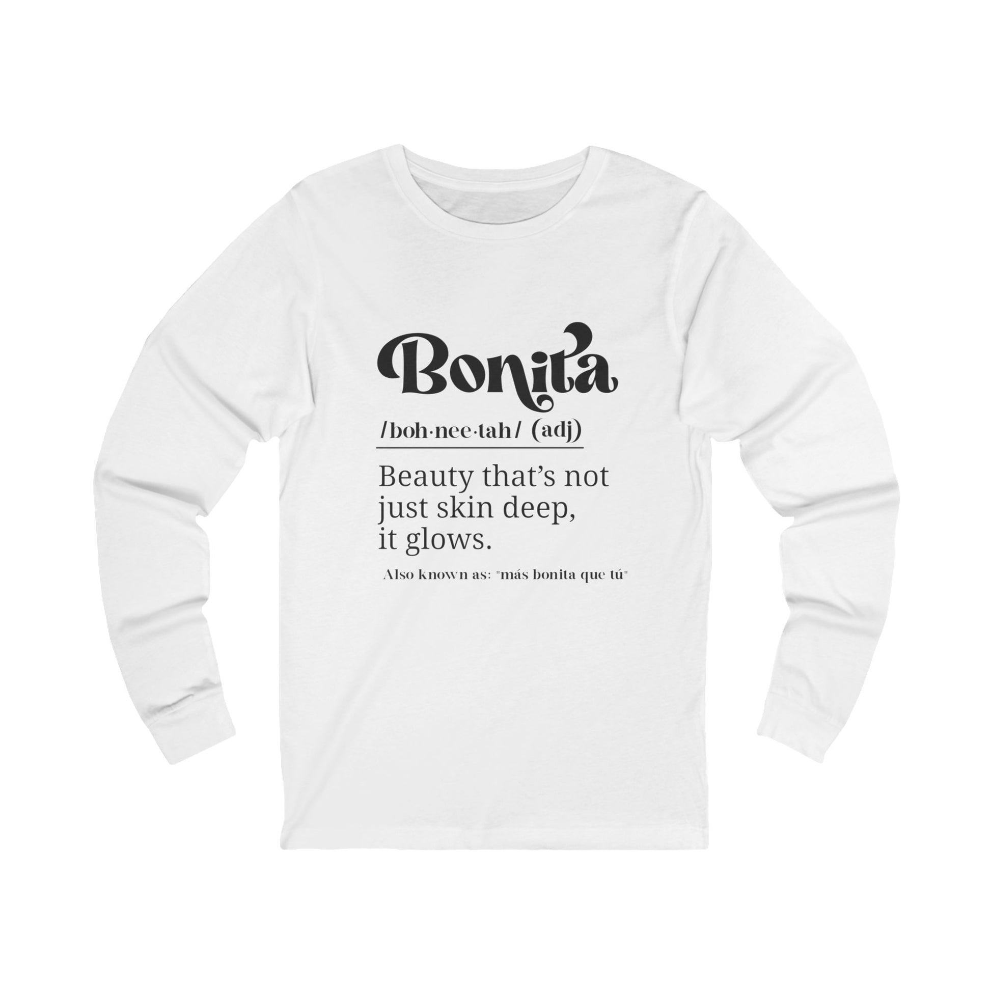 Bonita long sleeve tee that gives off a trendy and fun vibe, perfect for those who love to make a bold statement. Suitable for casual wear or layering where a bold style is desired.
